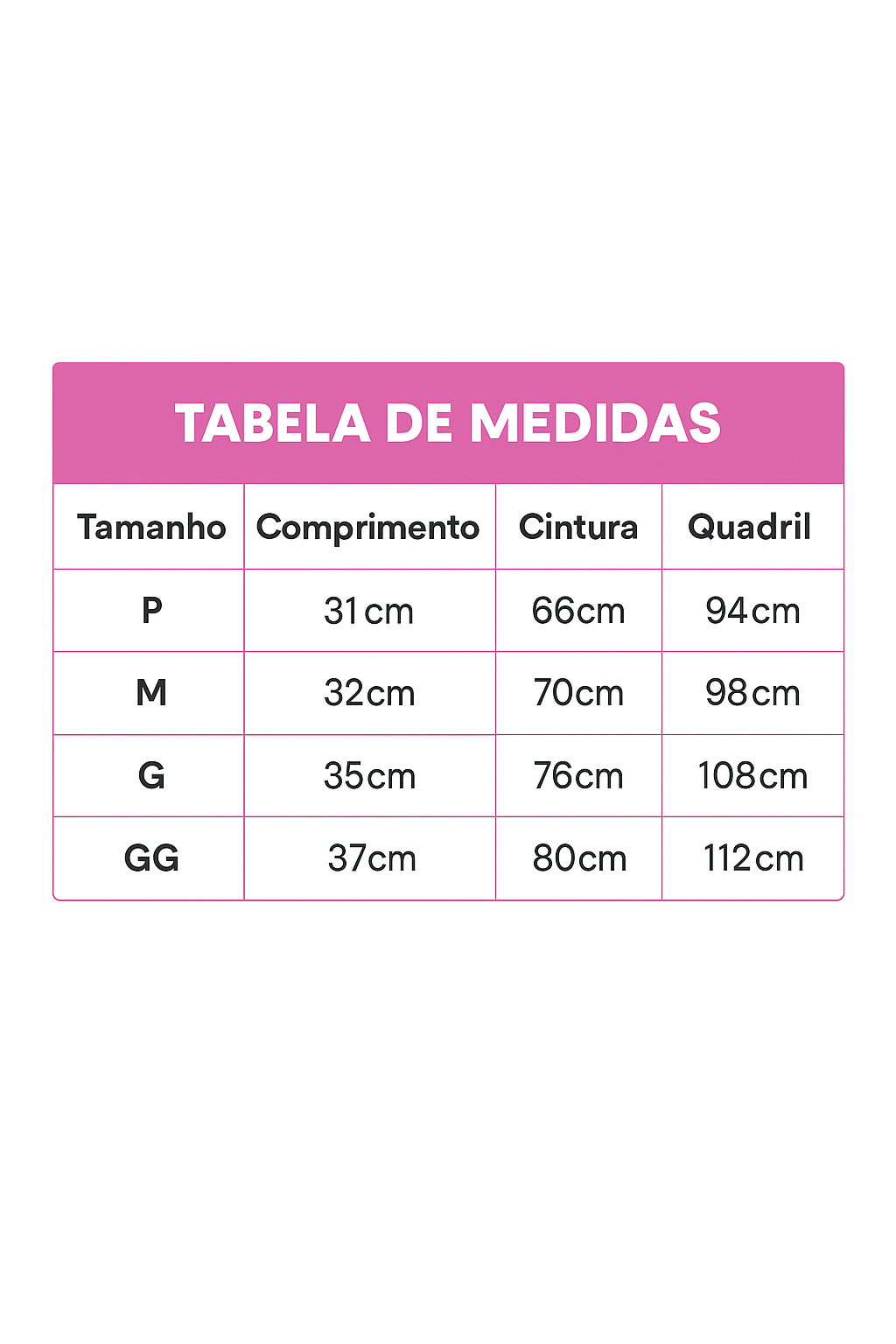 O modelo conta com short interno forrado e camada externa com recorte vazado, proporcionando o efeito “levanta bumbum” e garantindo um visual moderno e elegante.