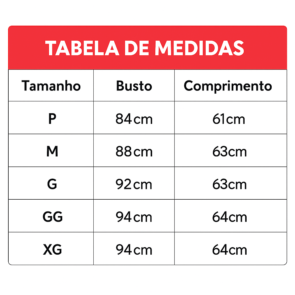 Confeccionada em 100% Poliéster, possui toque macio e caimento regular que se ajusta naturalmente ao corpo, proporcionando liberdade de movimento e conforto total.